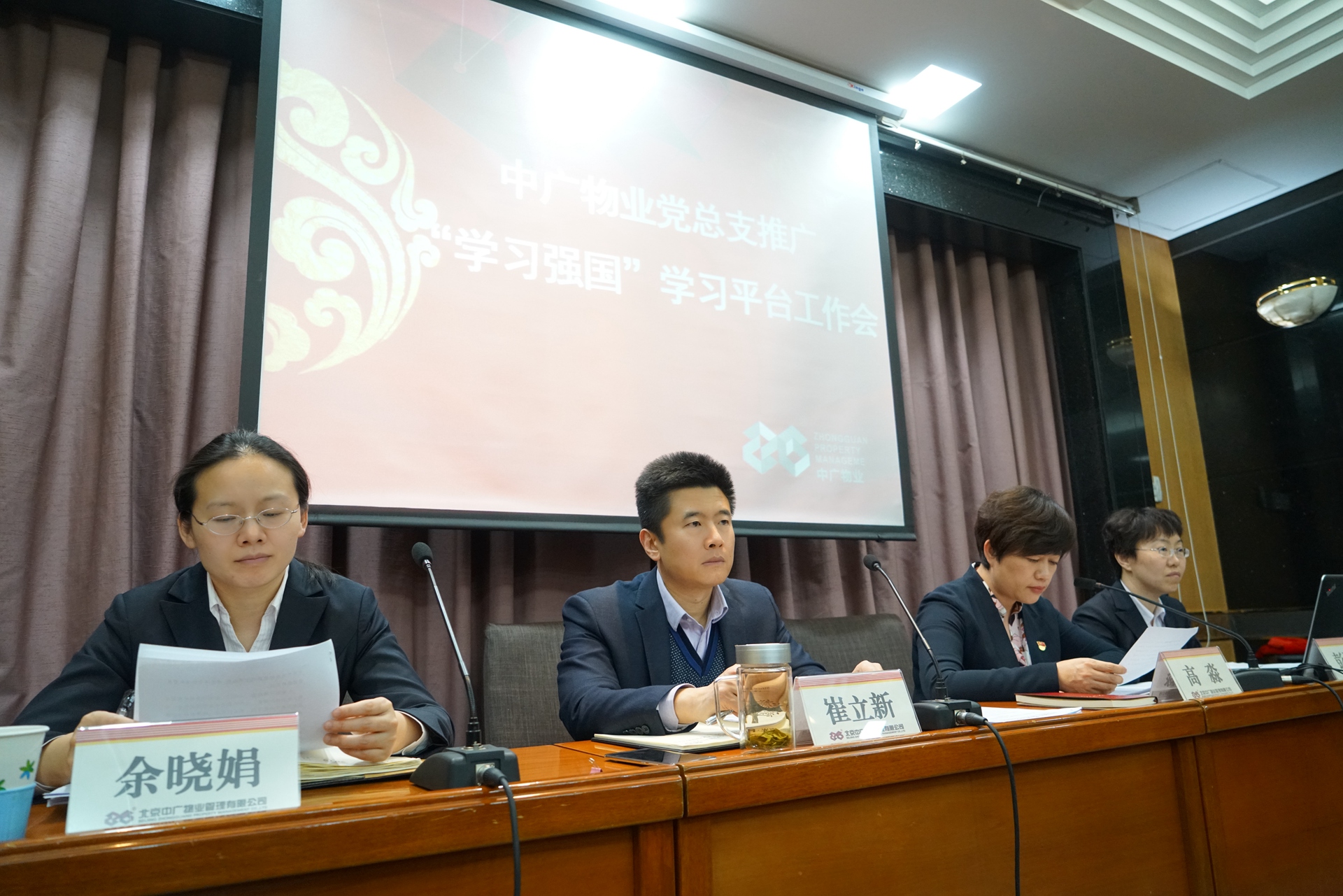 2019年3月14日,中廣物業(yè)黨總支召開全體黨員大會,推廣“學(xué)習(xí)強(qiáng)國”學(xué)習(xí)平臺應(yīng)用工作,公司黨總支書記、總經(jīng)理崔立新出席會議并講話,公司黨員和入黨積極分子47人參加會議。
