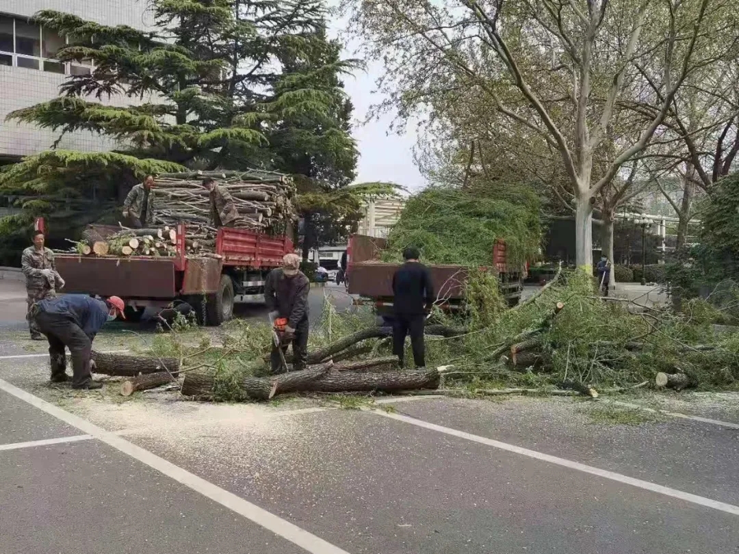 為防范極端天氣可能引發(fā)的樹木倒伏、枯枝掉落等情況發(fā)生,給過往行人和車輛帶來安全隱患,園林綠化子公司、復(fù)興路項(xiàng)目部、物資部團(tuán)結(jié)協(xié)作,利用周末人員較少時(shí)段,組織專業(yè)人員對總臺復(fù)興路辦公區(qū)內(nèi)樹木進(jìn)行修剪。公司領(lǐng)導(dǎo)高度重視,多次深入實(shí)地察勘,并作現(xiàn)場指導(dǎo)。園林綠化子公司、復(fù)興路項(xiàng)目部、物資部全程跟進(jìn),積極與總臺相關(guān)部門溝通協(xié)調(diào),提前清理作業(yè)區(qū)域內(nèi)車輛,調(diào)集安保人員維護(hù)現(xiàn)場秩序。作業(yè)結(jié)束后,及時(shí)組織保潔人員清運(yùn)修剪樹枝,竭力維護(hù)總臺辦公區(qū)內(nèi)園林綠化整潔美觀,保障總臺工作人員日常出行安全。