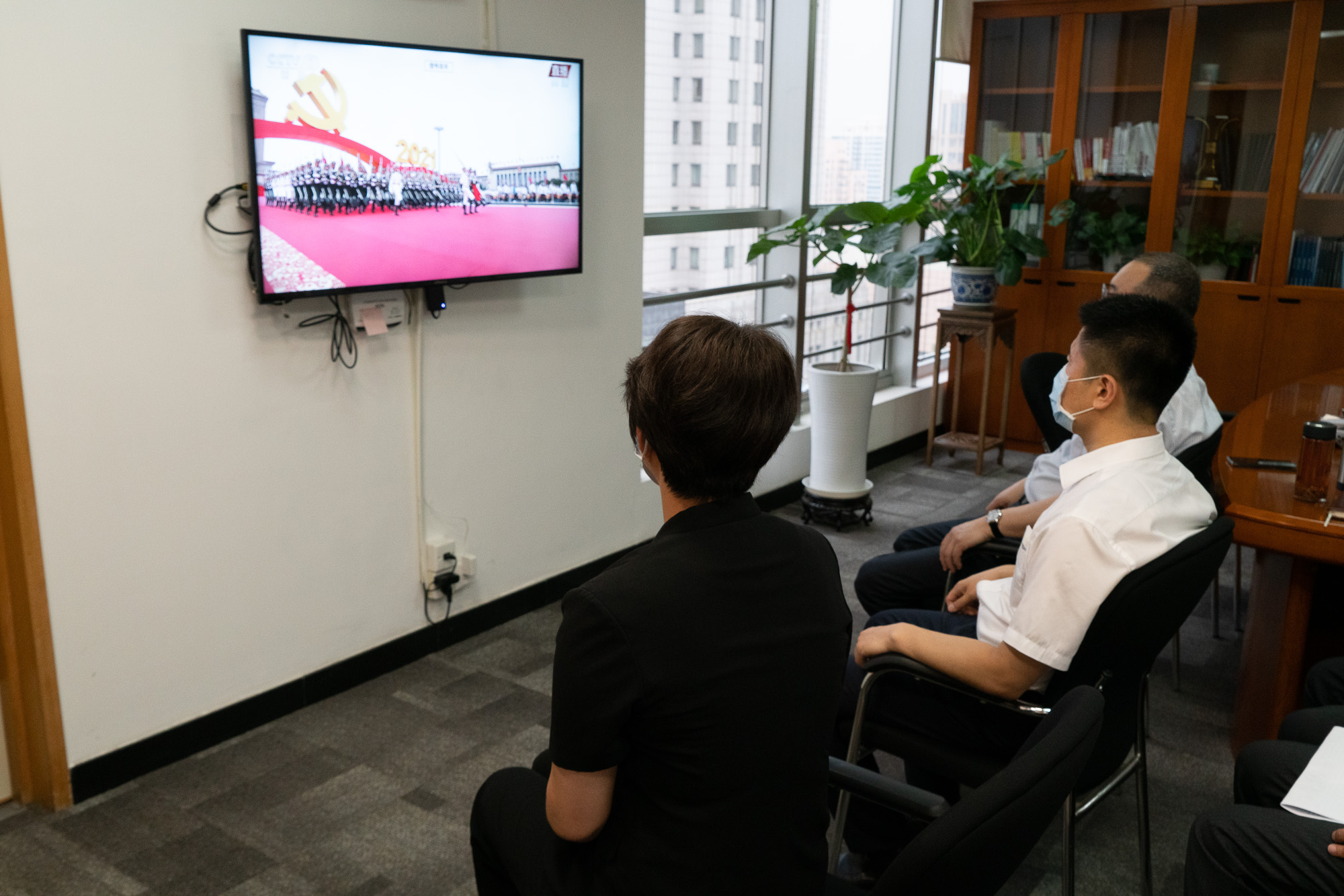 2021年7月1日上午8時(shí),慶祝中國共產(chǎn)黨成立100周年大會(huì)在北京天安門廣場(chǎng)隆重舉行。中共中央總書記、國家主席、中央軍委主席習(xí)近平發(fā)表重要講話。中廣物業(yè)公司各部門、各項(xiàng)目組織黨員干部收看中國共產(chǎn)黨成立100周年慶祝大會(huì)現(xiàn)場(chǎng)直播,公司黨總支書記、總經(jīng)理崔立新及領(lǐng)導(dǎo)班子等成員在音像資料館會(huì)議室集中收看。