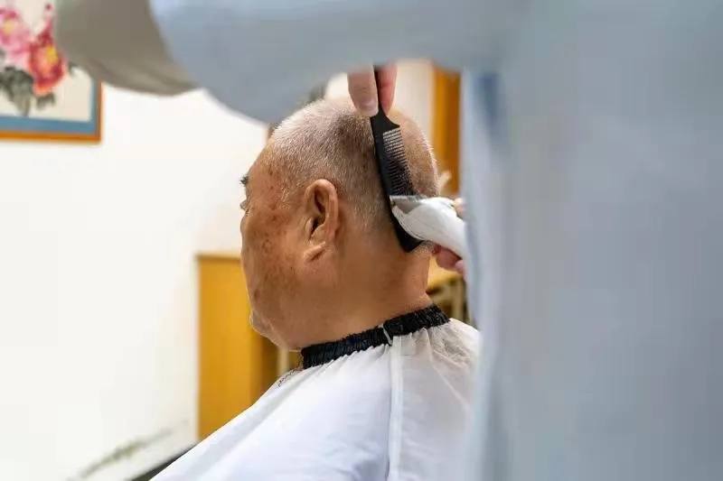 “五棵松項目員工大部分是在外漂泊的游子,疫情原因無法經(jīng)?;厝タ赐抑心赀~的父母,大家將對父母親人的思念之情轉(zhuǎn)化在便民養(yǎng)老各項服務(wù)工作中,這里的每一位老同志都是我們的家人?!被叵肫鸾荒甑谋忝耩B(yǎng)老服務(wù)開展情況,五棵松項目主管張書艷萬千思緒涌上心頭。自接到便民養(yǎng)老服務(wù)工作起,公司高度重視,有效利用整合現(xiàn)有資源,推出日常健康監(jiān)測服務(wù);在五棵松老干部活動站,定期開展優(yōu)惠理發(fā)服務(wù),并為行動不便的老同志提供上門服務(wù);開通中廣物業(yè)公司24小時應(yīng)急值守?zé)峋€等服務(wù),用心用情為老同志們辦實事、謀實惠。
