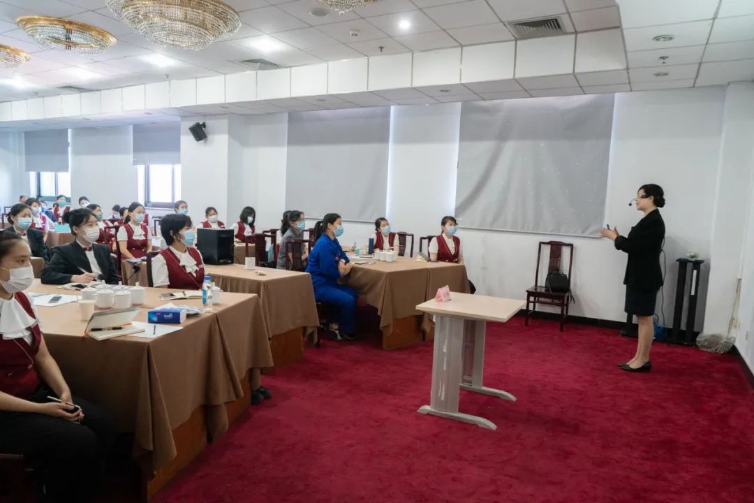 培訓(xùn)中,金老師以理論和實(shí)際相結(jié)合的方式,從禮儀文化與兩會(huì)服務(wù)理念、接待形象標(biāo)準(zhǔn)化、接待技能標(biāo)準(zhǔn)化、接待服務(wù)程序、職業(yè)道德等方面進(jìn)行了深入淺出的理論講解。同時(shí),為了達(dá)到更好的培訓(xùn)效果,穿插開(kāi)展現(xiàn)場(chǎng)示范、情景教學(xué)、快問(wèn)快答、小組討論等環(huán)節(jié),將抽象的理論知識(shí)具象化。參訓(xùn)人員認(rèn)真傾聽(tīng)記錄,不時(shí)與講師開(kāi)展互動(dòng),培訓(xùn)達(dá)到了預(yù)期的效果。