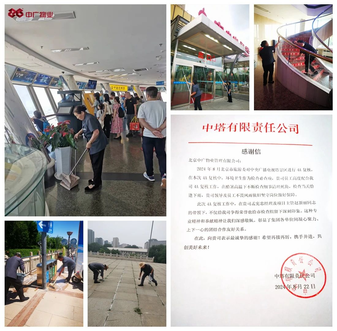 近日,北京中廣物業(yè)管理有限公司中塔項(xiàng)目收到甲方感謝信,信中向項(xiàng)目員工在北京市旅游發(fā)展委員會對中央廣播電視塔景區(qū)4A復(fù)核工作中的高度配合表示最誠摯的感謝。